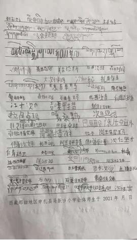 申扎縣馬躍鄉(xiāng)小學師生發(fā)來的感謝信